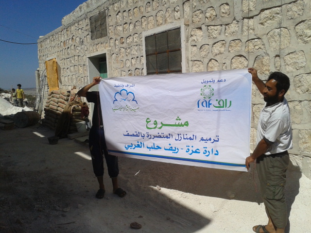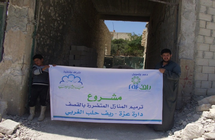 بدعم مبارك من مؤسسة الشيخ ثاني بن عبد الله للخدمات الإنسانية ( راف )، و بإشراف وتنفيذ هيئة الشام الإسلامية، تمَّ تنفيذ مشروع ترميم المنازل المتضررة من القصف في مدينة دارة عزة في ريف حلب الغربي.