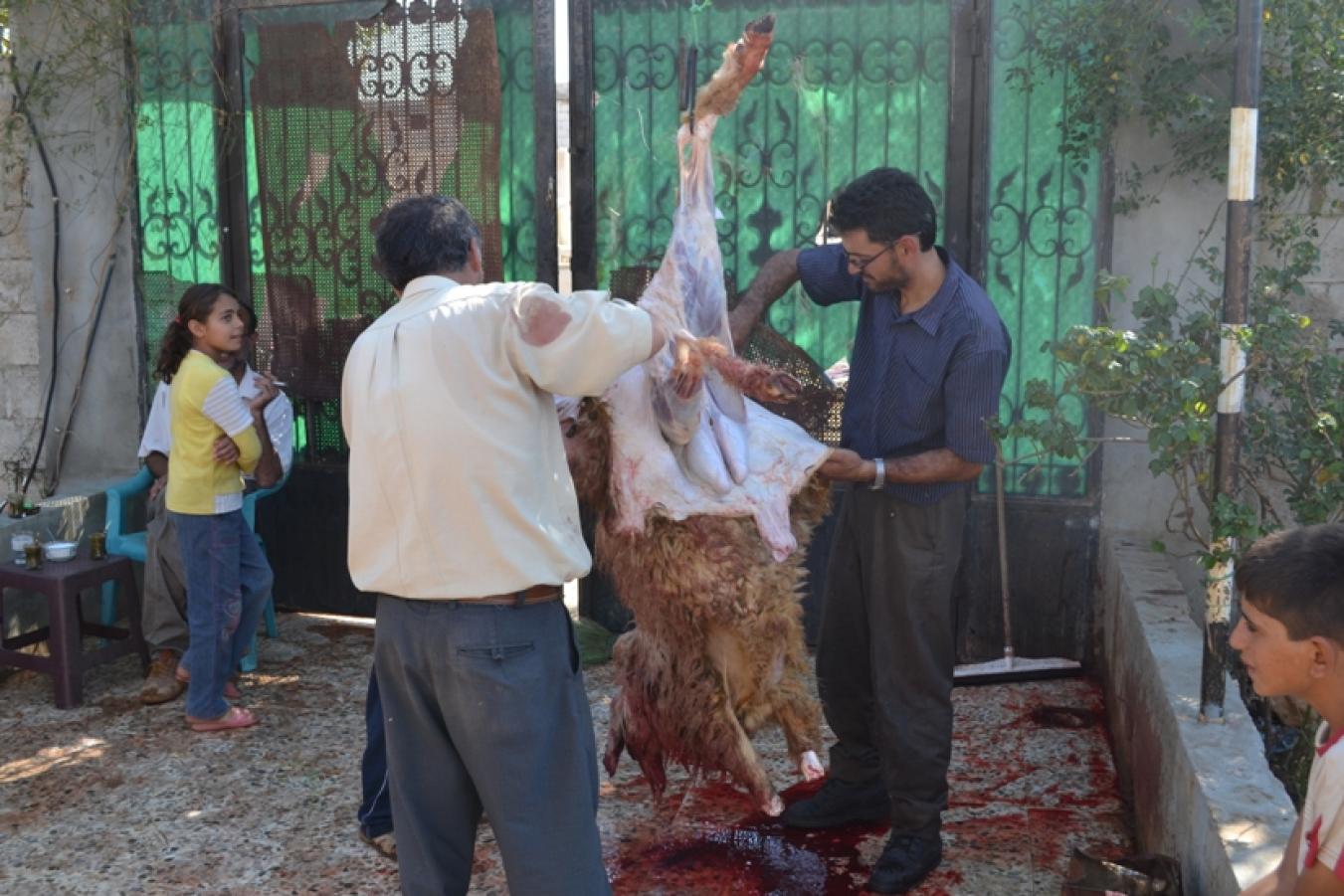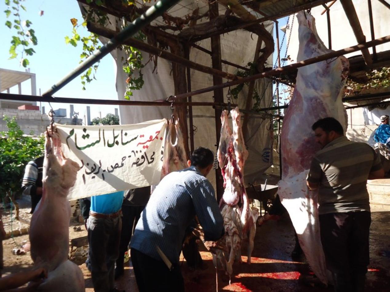 وهذه صور من مشروع الأضاحي التي تم تنفيذها في محافظة حمص  في عيد أضحى 1434 هـ