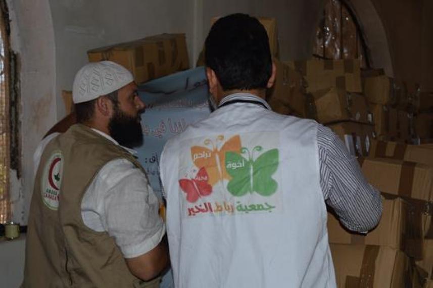 قافلة اغيثوا سوريا مقدمة من الشعب التونسي، قام بالإشراف على توزيعها المكتب الإغاثي في هيئة الشام الإسلامية .