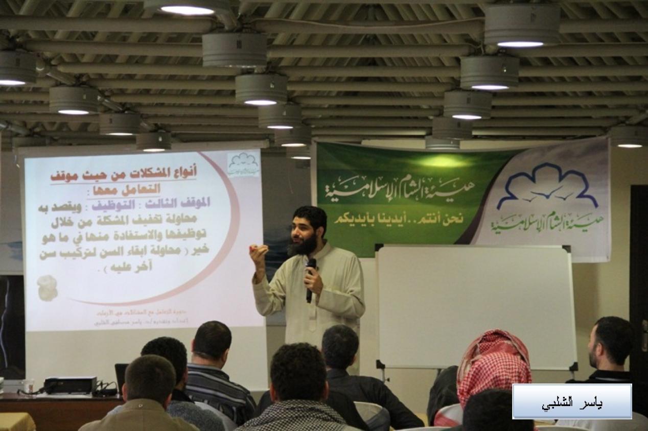 انطلاقا من رسالة هيئة الشام الإسلامية في تبليغ دين الله عز وجل، وتعليمه للناس عقيدة وسلوكاً، وإعداد الدعاة المؤهلين للقيام بذلك، وسعياً من المكتبين الدعوي والعلمي في الهيئة لدعم وتطوير العمل الدعوي في سوريا، أقيمت الدورة العلمية الأولى لتأهيل الدعاة وأعضاء الهيئات الشرعية في سوريا على الحدود السورية التركية، في الفترة من السابع إلى الثاني عشر من شهر ربيع الأول 1434 هـ، الموافق من التاسع عشر إلى الرابع والعشرين يناير / كانون الثاني 2013م ، بواقع ست وخمسين ساعة تدريبية.